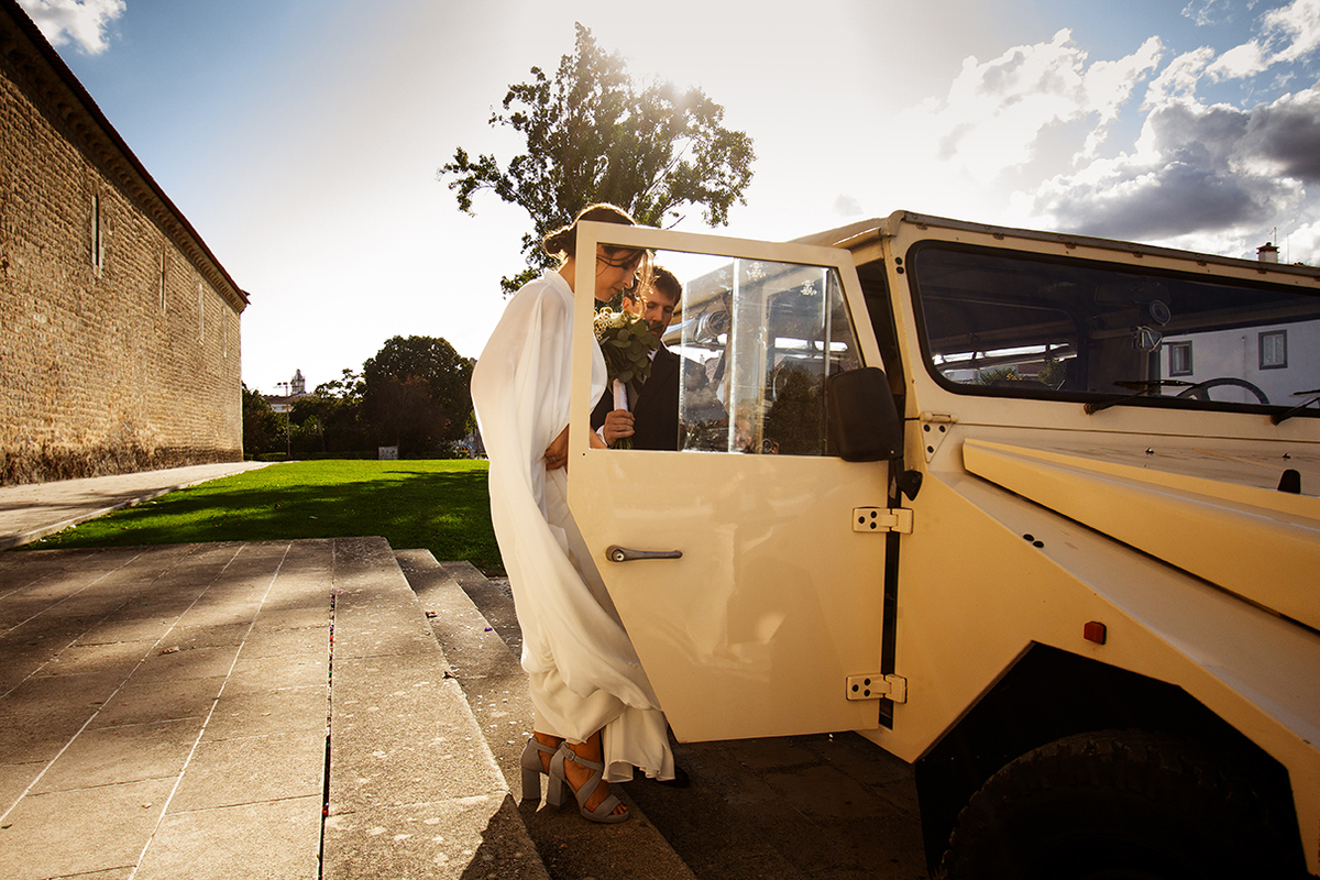 Mas, agora voltamos ao casamento da Maria e do João... A noiva foi para a igreja no jipe antigo com que o pai a ia buscar ao infantário, já dissemos que gostamos de momentos e objectos com significado? Pois é! Torna tudo tão mais bonito, tão mais memorável. Antes de irmos para a igreja ainda passámos à porta da escola onde a noiva estudou, fomos ver uma vista incrível ao miradouro e rumámos à igreja. Maravilhosa, majestosa, imponente.