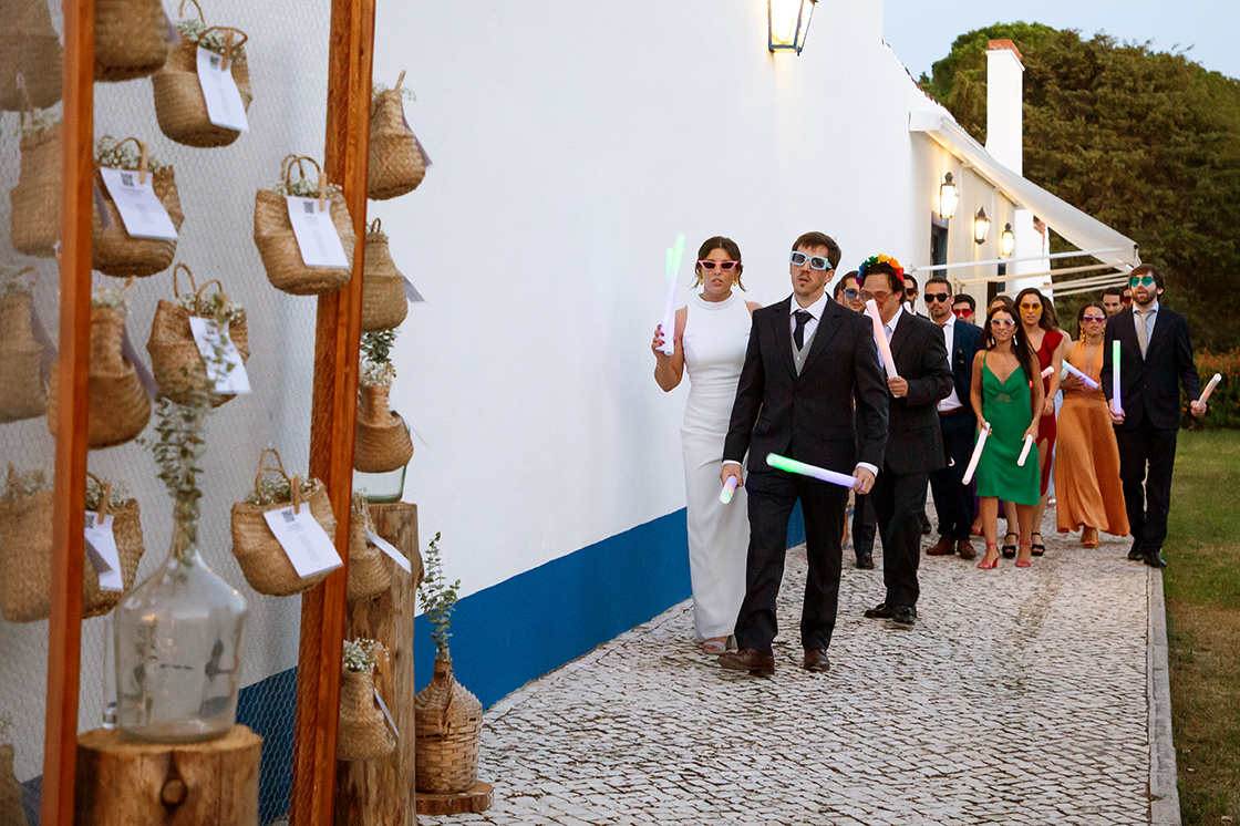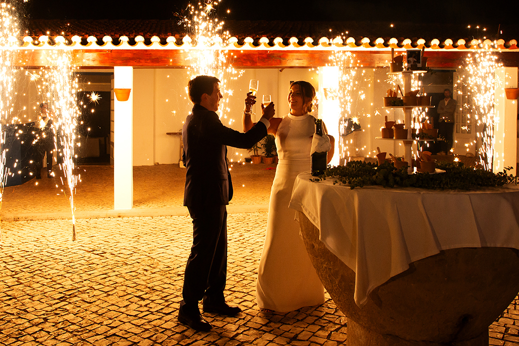 Conheceram-se em Lisboa mas são ambos de Santarém e, como manda a tradição, o casamento e a festa fez-se lá. Na já nossa conhecida e tão querida Quinta dos Anjos. Nesta quinta sentimo-nos em casa, tudo nela respira casa, paz, sossego, beleza e raízes. O serviço é maravilhoso e não nos cansamos de lá ir. É como se retornássemos a casa de cada vez que lá vamos, apesar de estarmos em trabalho, somos tão bem tratados que nos fazem sentir família. Sim, ainda há pessoas, sítios e negócios assim, e nós ficamos muito felizes por isso. Estamos sempre desejosos de voltar.